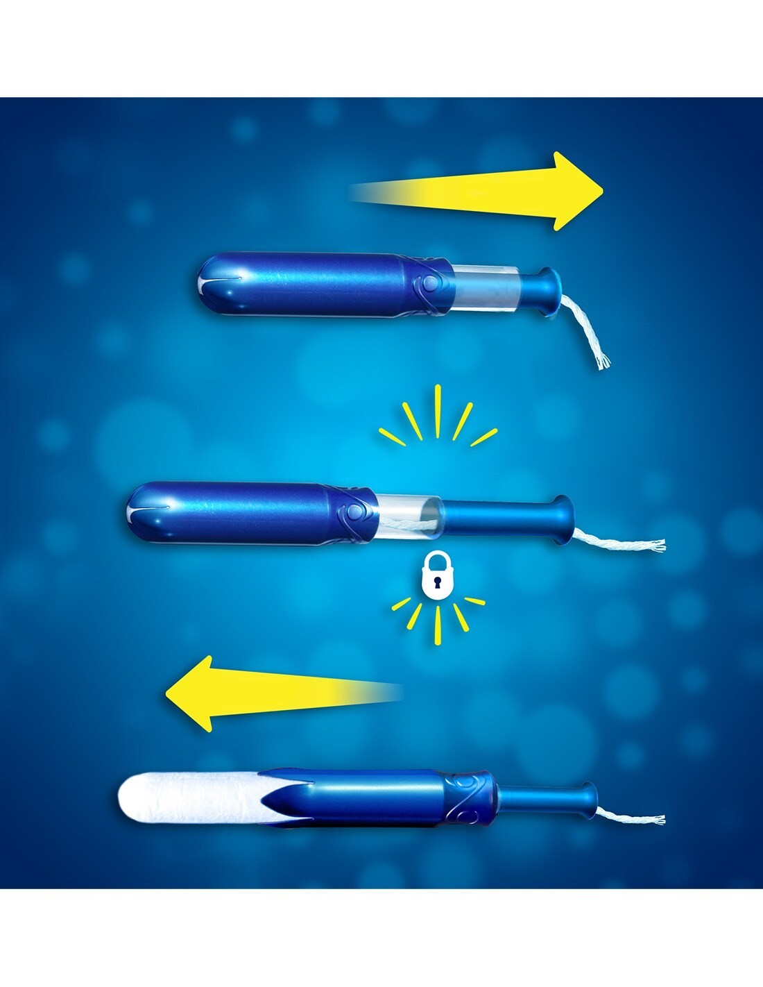 Cuenta con un aplicador compacto de plástico suave, con punta redondeada y agarre antideslizante, que facilita una inserción cómoda y precisa. La forma del tampón se expande de manera uniforme para adaptarse a tu cuerpo y ofrecer hasta 8 horas de protección continua.