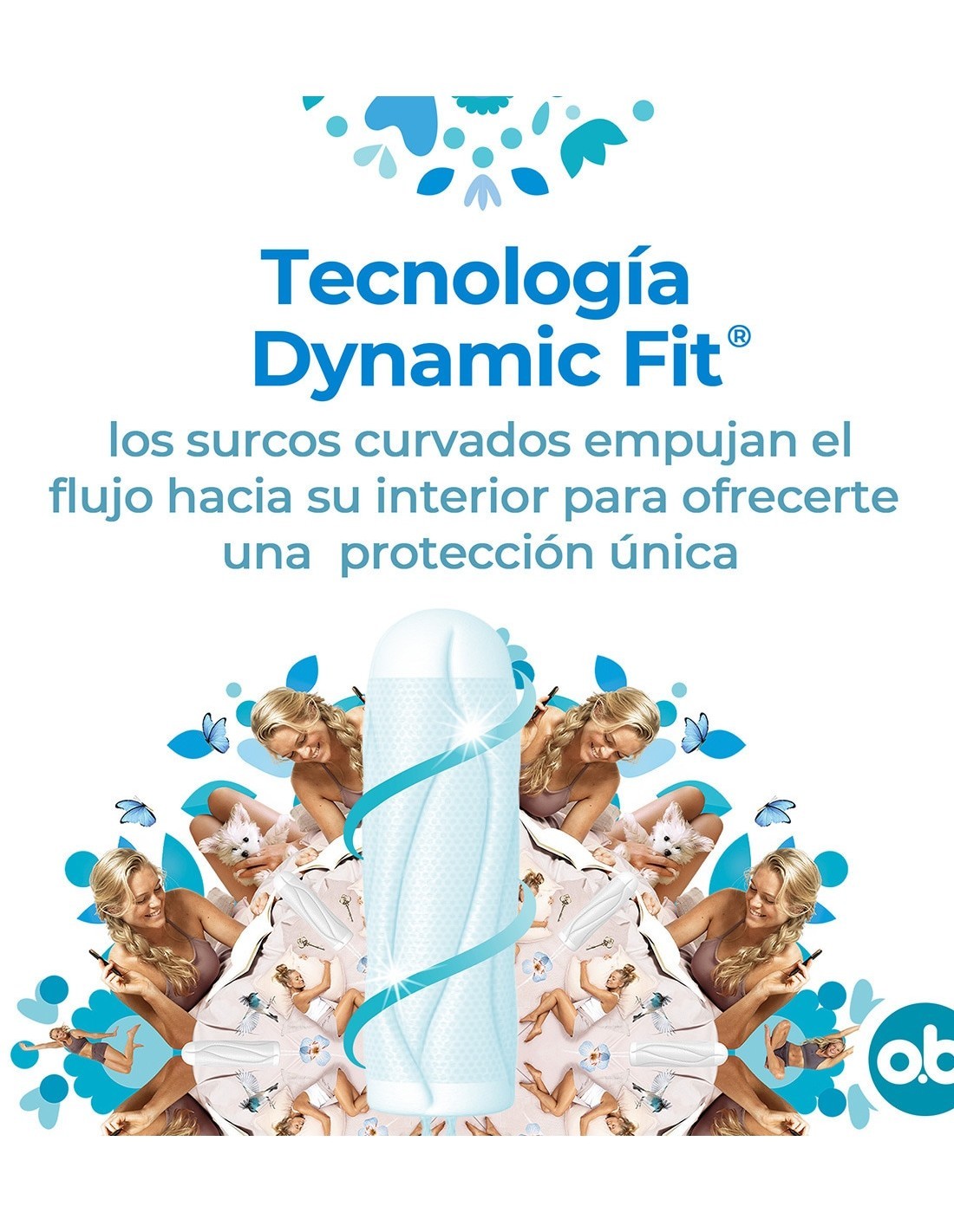 Tampones o.b. ProComfort Súper sin aplicador, 32 unidades. Protección máxima para flujo medio o abundante. Núcleo absorbente 100% vegetal.