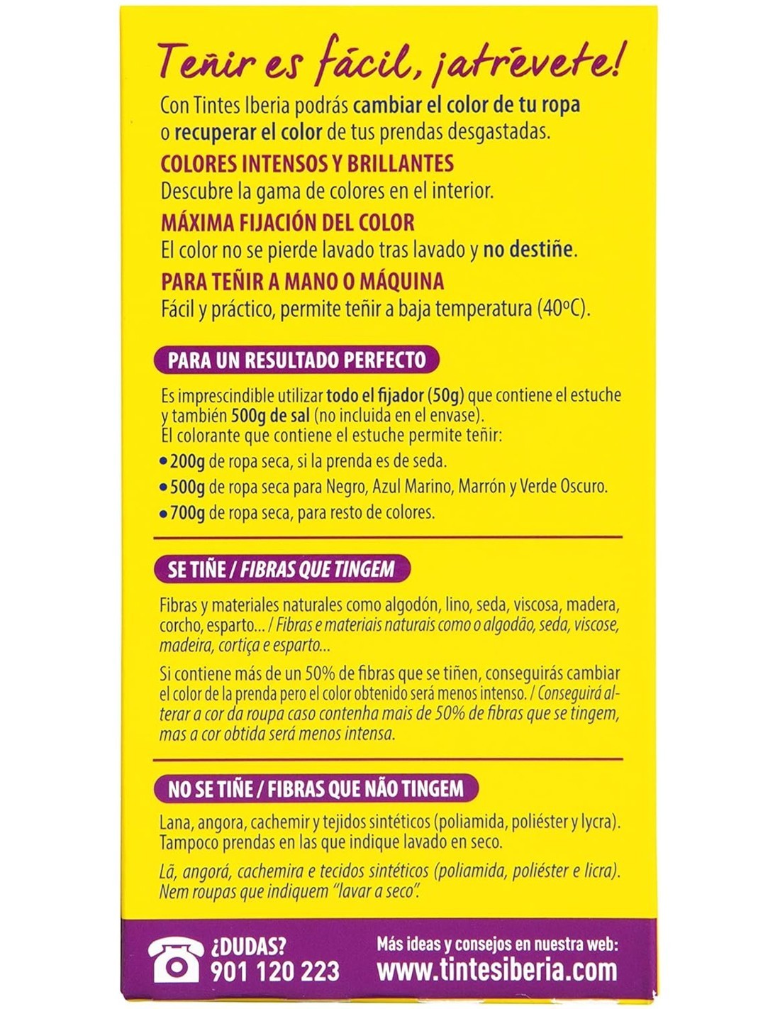Renueva tus prendas favoritas con el Iberia Tinte para Teñir Prendas, una solución práctica y eficaz para dar una nueva vida a tus tejidos. Es perfecto tanto para recuperar el color original como para cambiarlo por completo, dejando un tono intenso, duradero y uniforme.