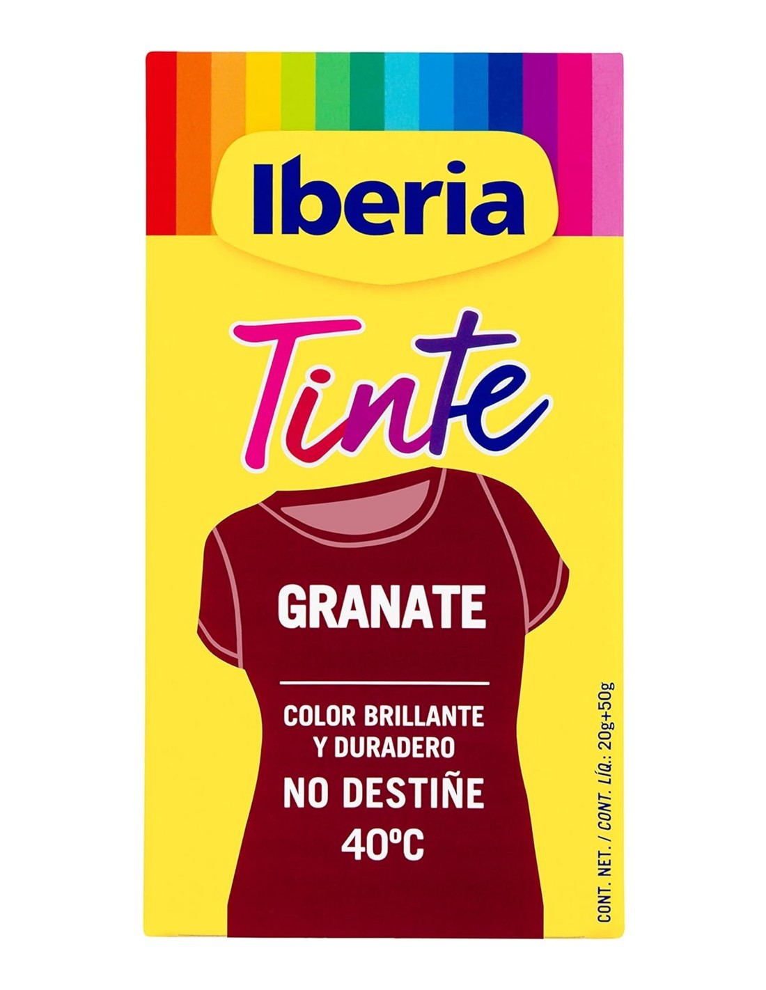 Iberia tinte granate para teñir prendas a mano o a máquina a 40?°C. Colores intensos y resistentes. Ideal para tejidos naturales.