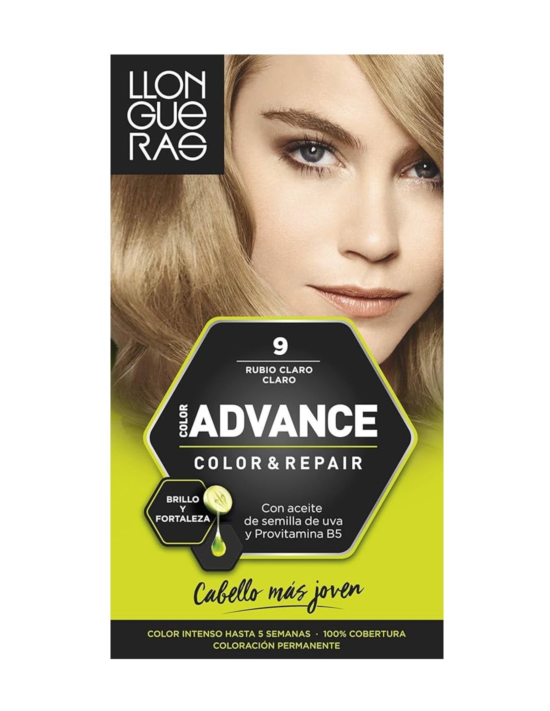 Coloración permanente Llongueras Color Advance tono 9 Rubio Claro Claro. Cobertura perfecta de canas y color radiante y duradero.