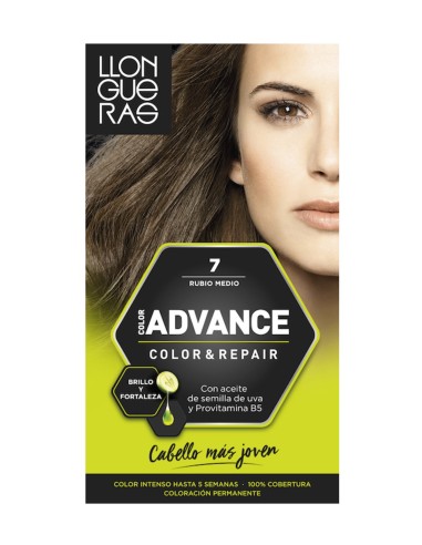 Llongueras Color Advance en el tono 7 Rubio Medio es una coloración permanente que garantiza un color intenso, brillante y de aspecto natural. Su fórmula avanzada cubre las canas por completo y asegura que el color se mantenga vibrante y lleno de matices por más tiempo. Este tinte es fácil de aplicar en casa, permitiéndote conseguir un resultado profesional. El tono Rubio Medio es ideal para quienes buscan un color equilibrado y luminoso.
