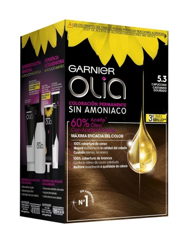 Consigue un color vibrante y saludable con Olia Tinte Sin Amoniaco 5.3 Capuccino. Su fórmula única sin amoníaco está enriquecida con aceites naturales, proporcionando un color brillante y duradero mientras nutre el cabello. El tono capuccino ofrece una mezcla cálida y natural, cubriendo perfectamente las canas. Ideal para quienes buscan un color de cabello radiante sin sacrificar la suavidad y el cuidado.