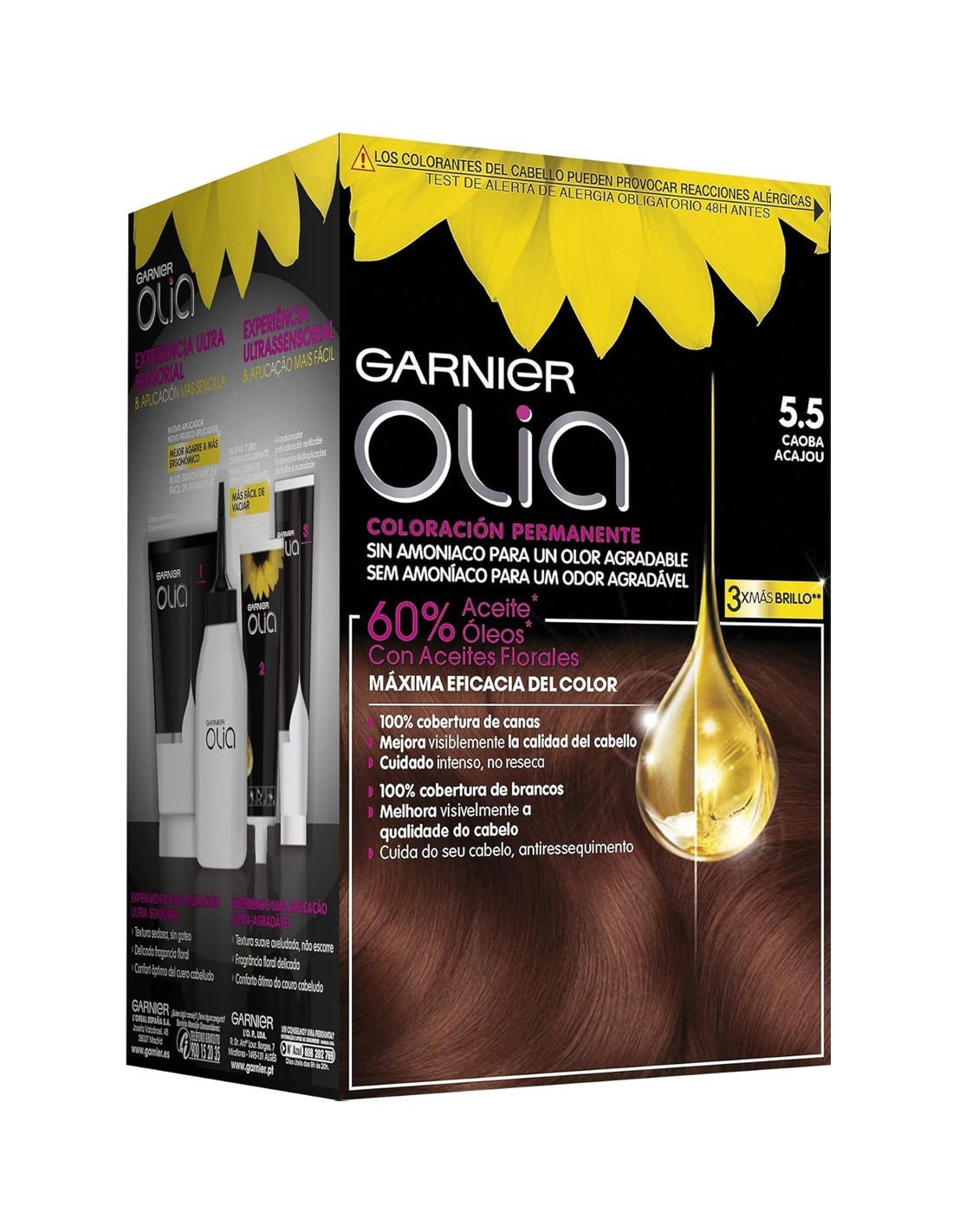 Olia Tinte sin Amoniaco 5.5 Caoba. Coloración permanente con aceites florales, cubre 100% canas.
