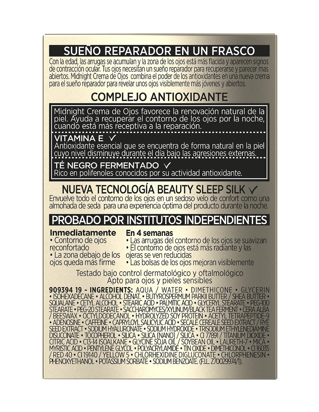 El Contorno de Ojos L'Oréal Paris Age Perfect Midnight ha sido desarrollado para revitalizar la piel del contorno de ojos durante la noche, combatiendo los signos de la fatiga y el envejecimiento. Su fórmula concentrada trabaja para reducir visiblemente las bolsas y ojeras, suavizar las líneas de expresión y arrugas, y devolver a la mirada un aspecto más joven y descansado. Con su uso continuado, este tratamiento de noche hidrata profundamente y ayuda a fortalecer la delicada piel de esta zona.