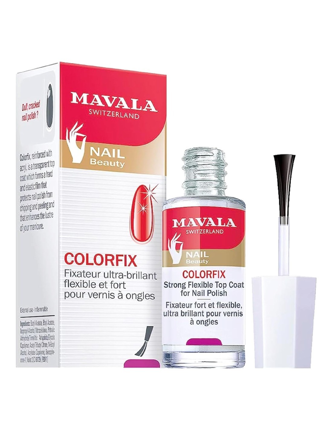 El Fijador del Esmalte Mavala Colorfix es un producto esencial para una manicura duradera y profesional. Este fijador transparente, reforzado con Acryl, forma una capa protectora brillante, dura y flexible que actúa como un escudo para tu esmalte.