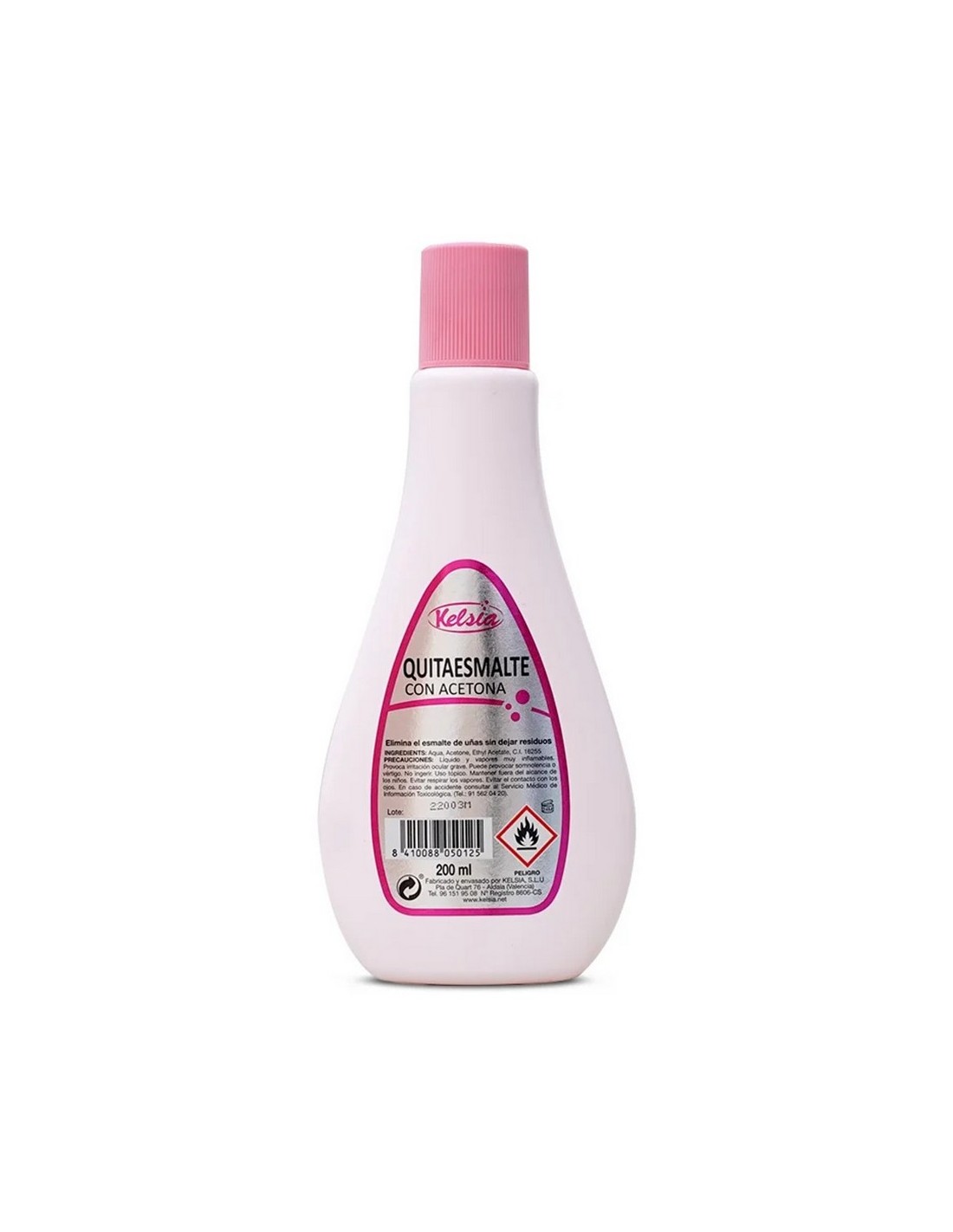 Kelsia Quitaesmaltes Hidratante 200 ml elimina el esmalte de uñas de forma suave y efectiva, mientras hidrata y cuida las uñas y cutículas.