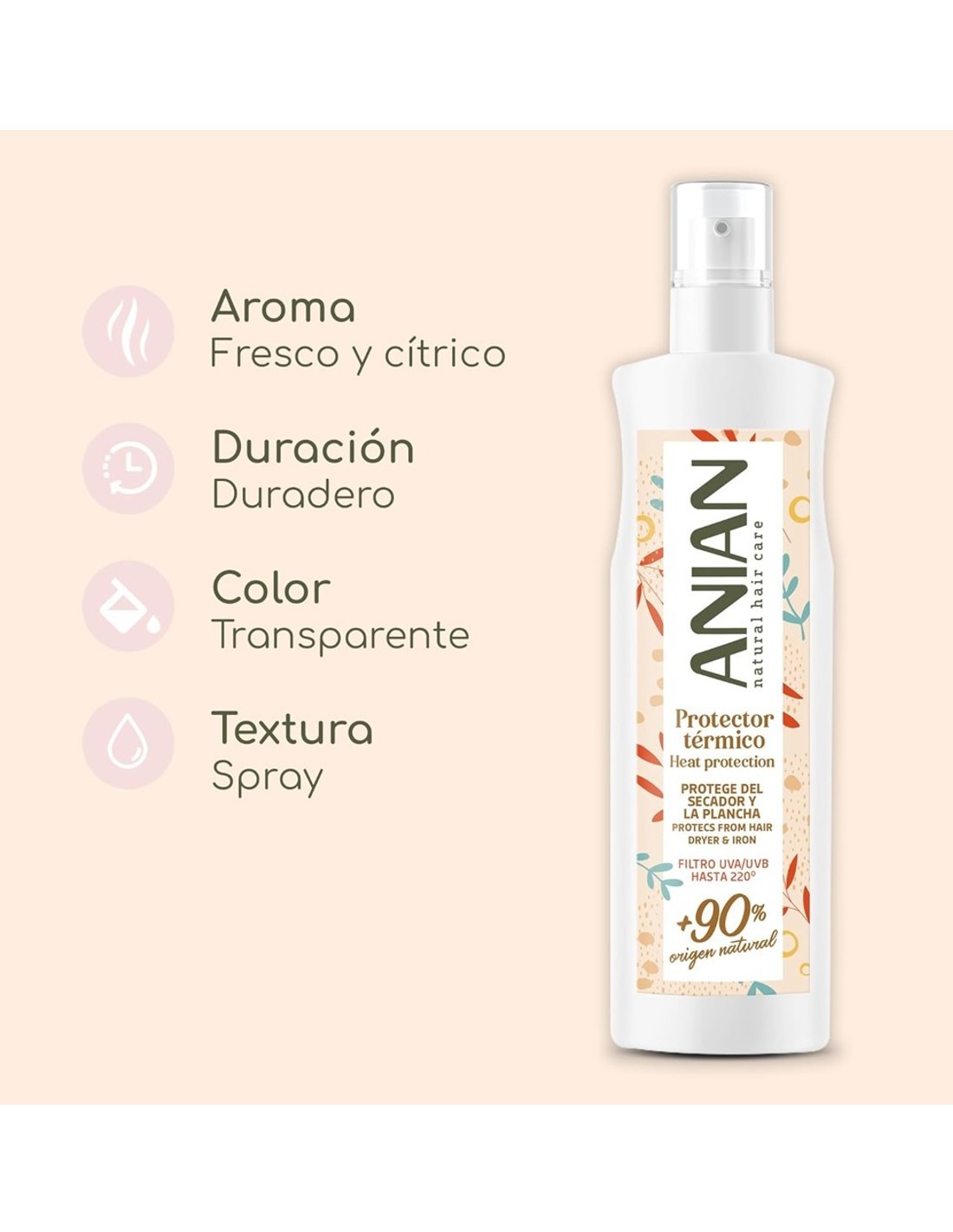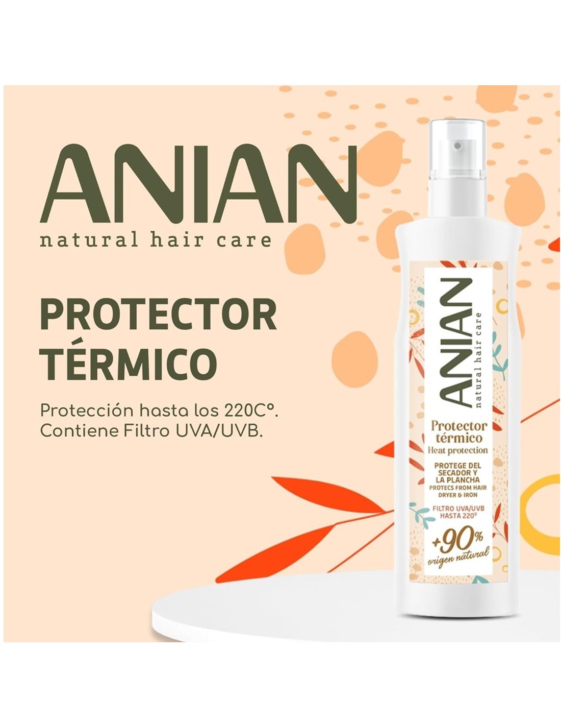 Anian Protector Térmico 250ml, protege el cabello del calor y lo mantiene sano.