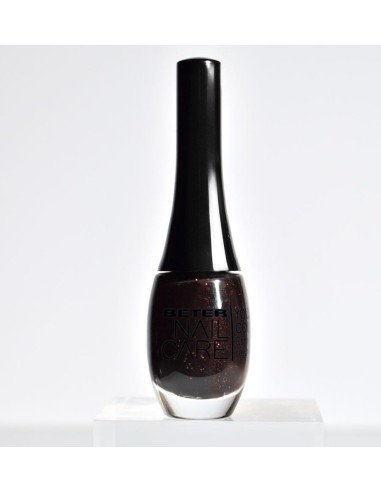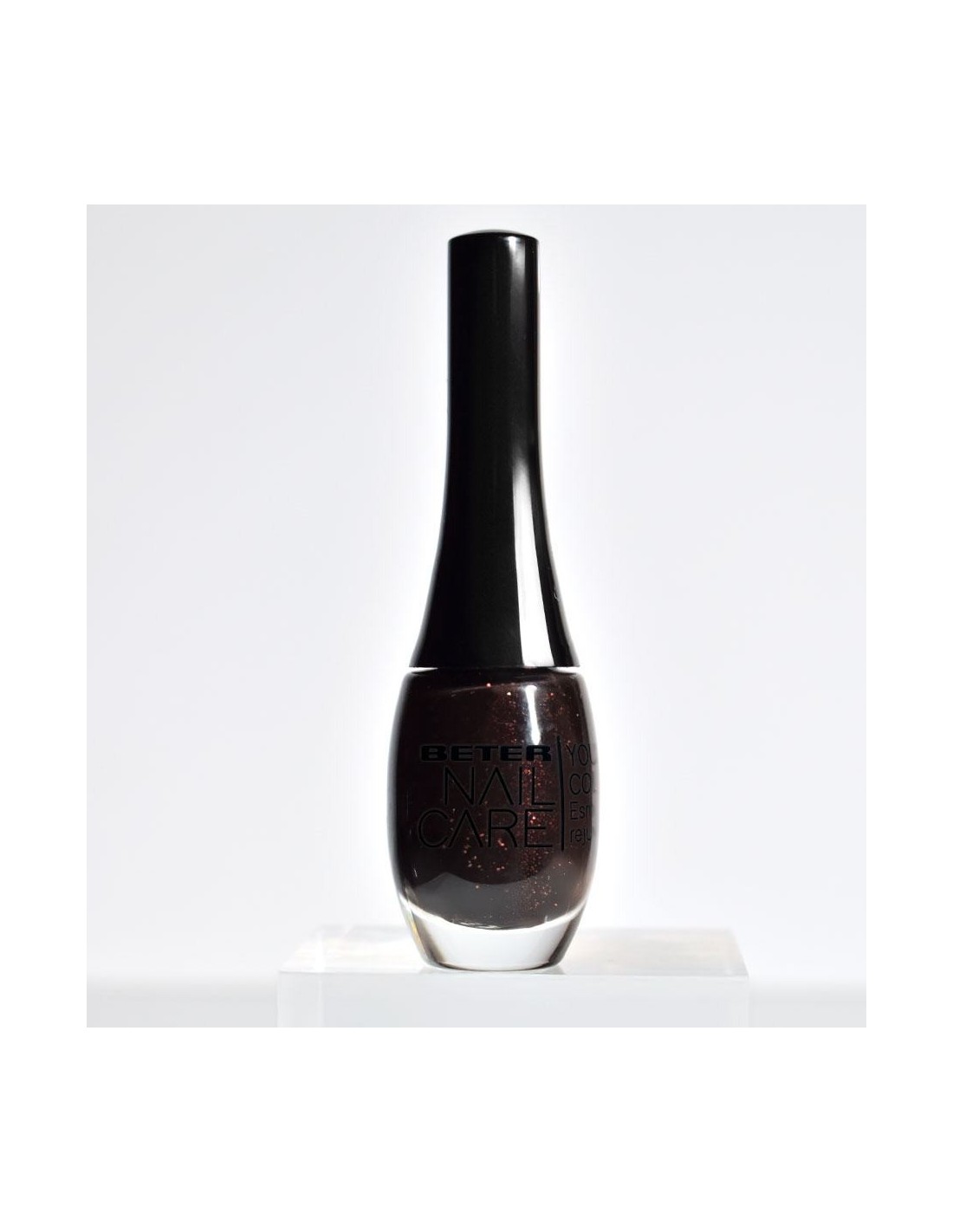 BETER Esmalte Youth Color es un esmalte de uñas vegano que combina color y tratamiento en un solo producto. Su fórmula, enriquecida con el complejo Pro-Age (Vitamina C, ácido hialurónico y plancton foto reactivo) y filtro UV, fortalece, suaviza y protege las uñas del envejecimiento, proporcionando un brillo extraordinario y una alta cobertura de larga duración.