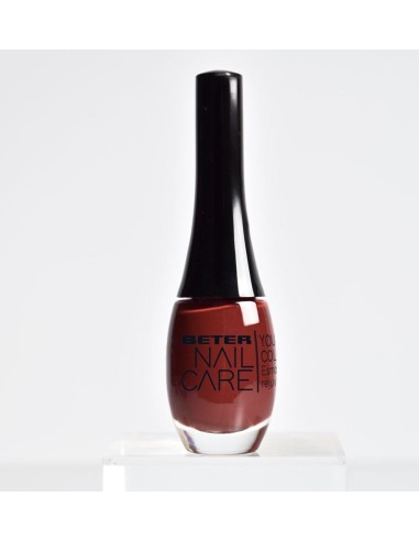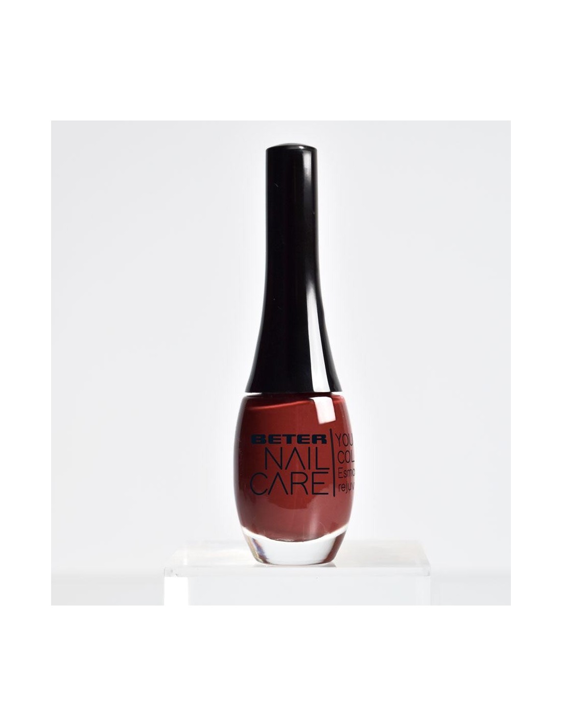 BETER Esmalte Youth Color es un esmalte de uñas vegano que combina color y tratamiento en un solo producto. Su fórmula, enriquecida con el complejo Pro-Age (Vitamina C, ácido hialurónico y plancton foto reactivo) y filtro UV, fortalece, suaviza y protege las uñas del envejecimiento, proporcionando un brillo extraordinario y una alta cobertura de larga duración.